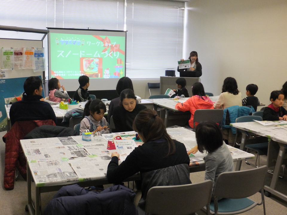 12月20日(土)に、ワークショップ「空きビンでスノードーム作り」を実施しました。