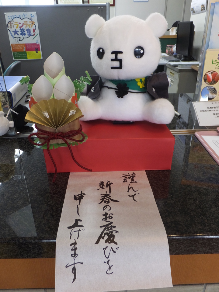 季節を感じられる受付を意識し、1月は着物姿のていたんとリサイクル門松で来館者をお迎えしております(^▽^)![]()