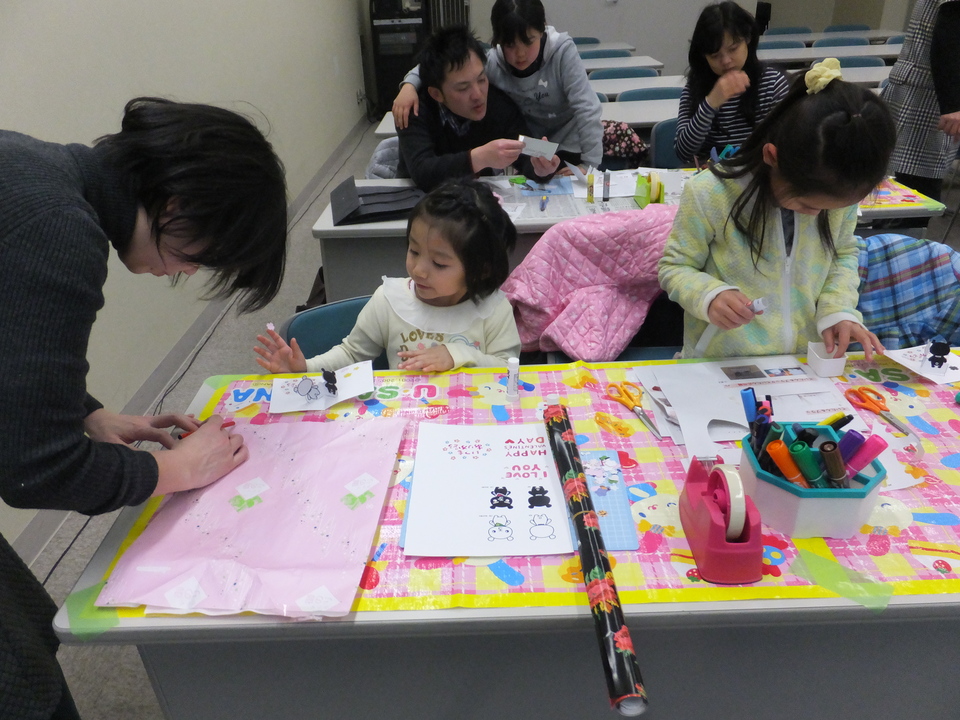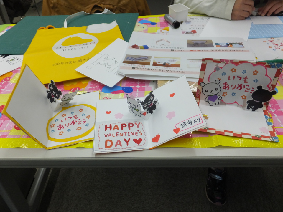 2月のワークショップは、14日バレンタインの日にちなみ、気持ちを伝える『ポップアップカード作り』を実施しました♡