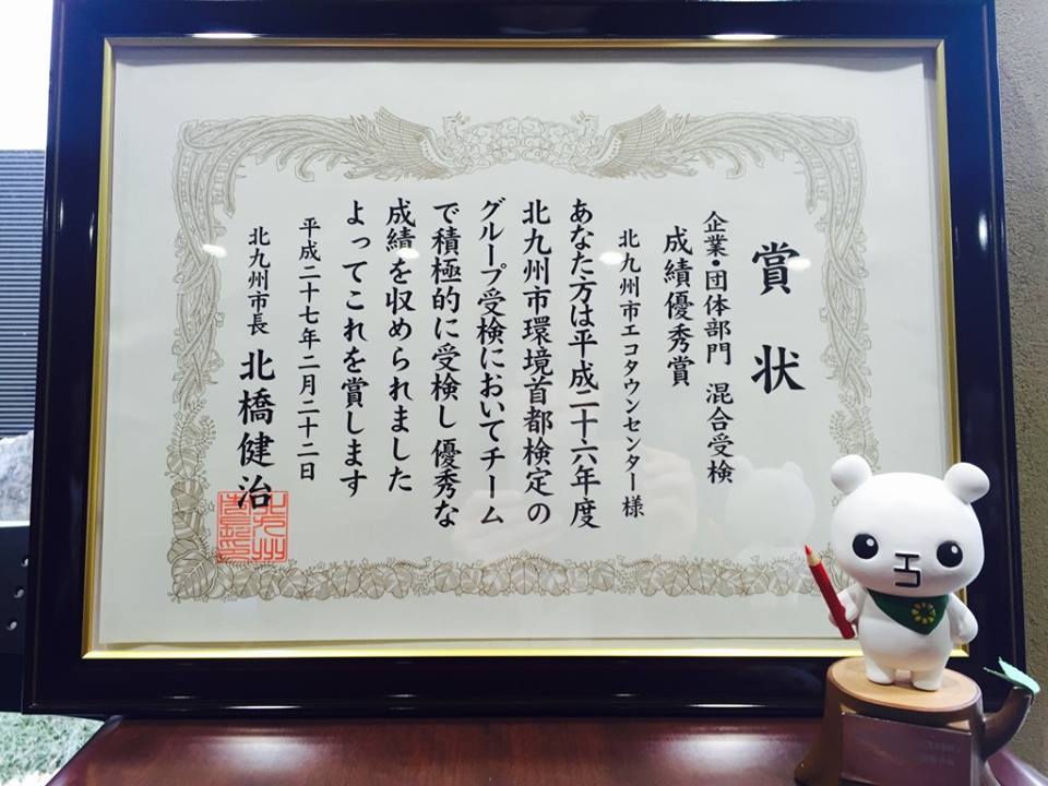 Facebookではご紹介しましたが、12月に北九州市環境首都検定を受験してきました♪