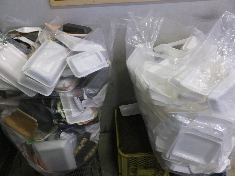 ここでは、スーパーなどから回収したトレイも手選別しています。