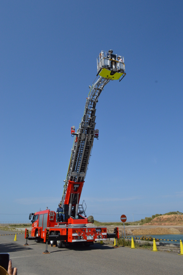 消防はしご車に乗って処分場を見渡したり