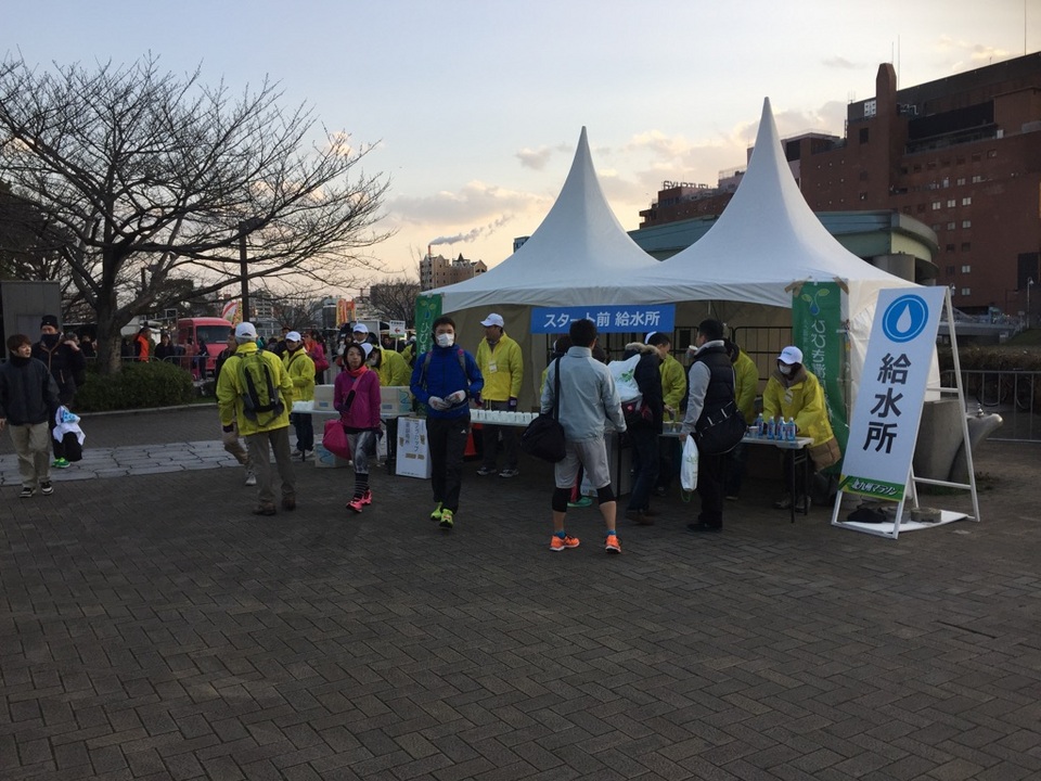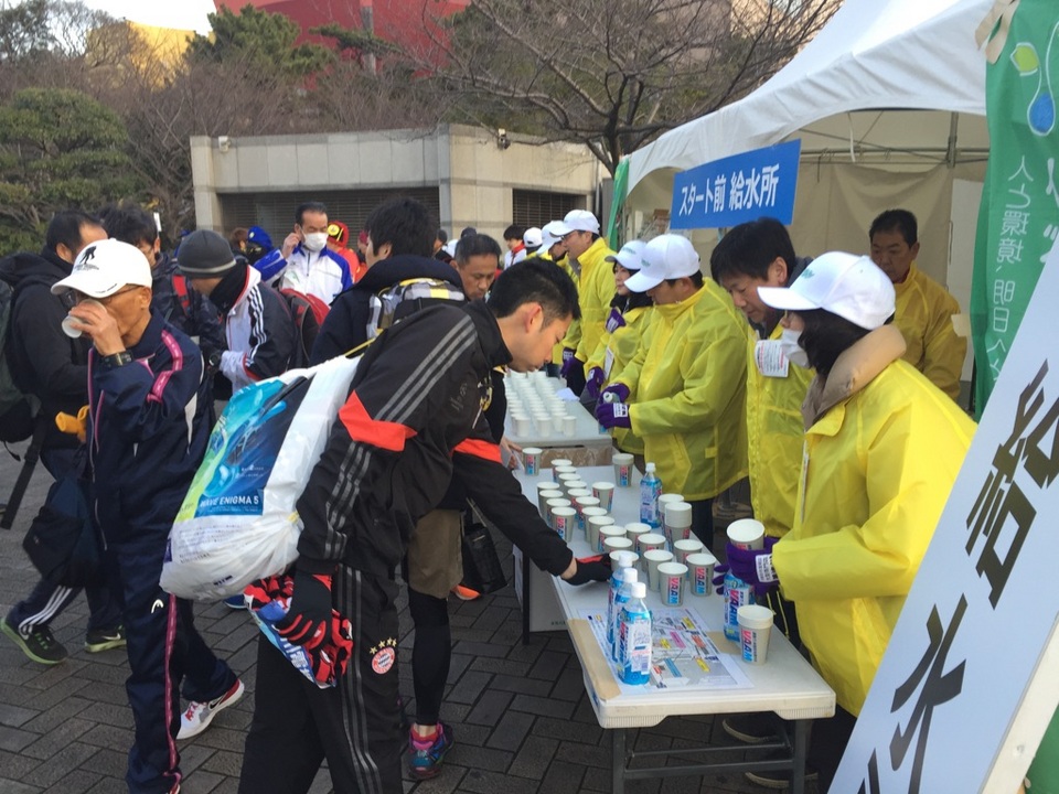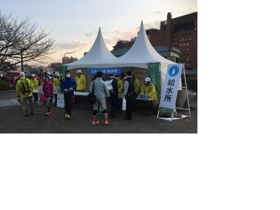 スタート前給水所3か所で、ランナーの皆様に力水&VAAMを提供しました。