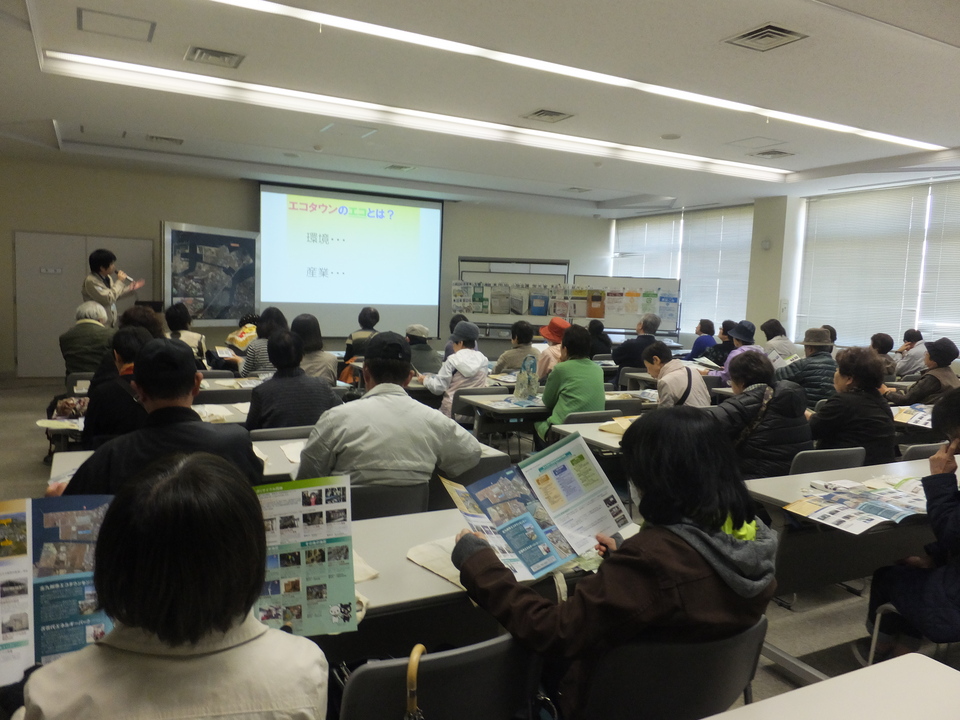 朝一番からリサイクルやエネルギーについての話で環境啓発。皆さん真剣に聞いていました。