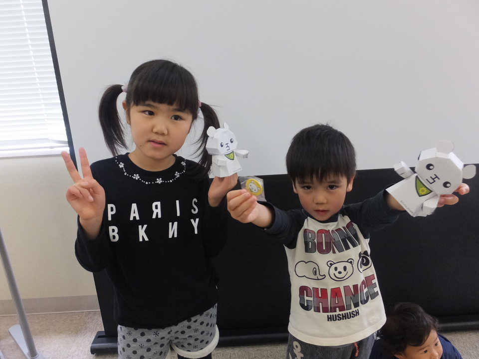 顔や手などの細かい部分は、切り取るのも組み立ても皆さん悪戦苦闘されていましたが、上手に完成したていたんを見てご満悦のようでした(*^_^*)