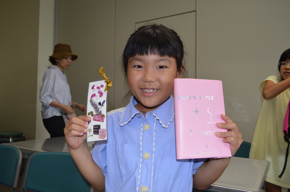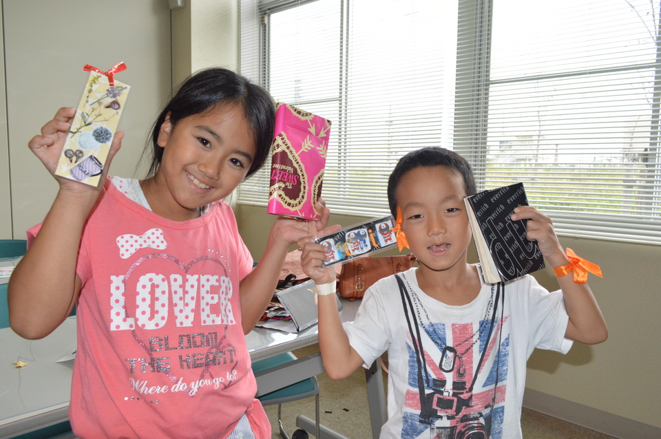 みなさんとっても可愛いブックカバーとしおりを作成していました☆