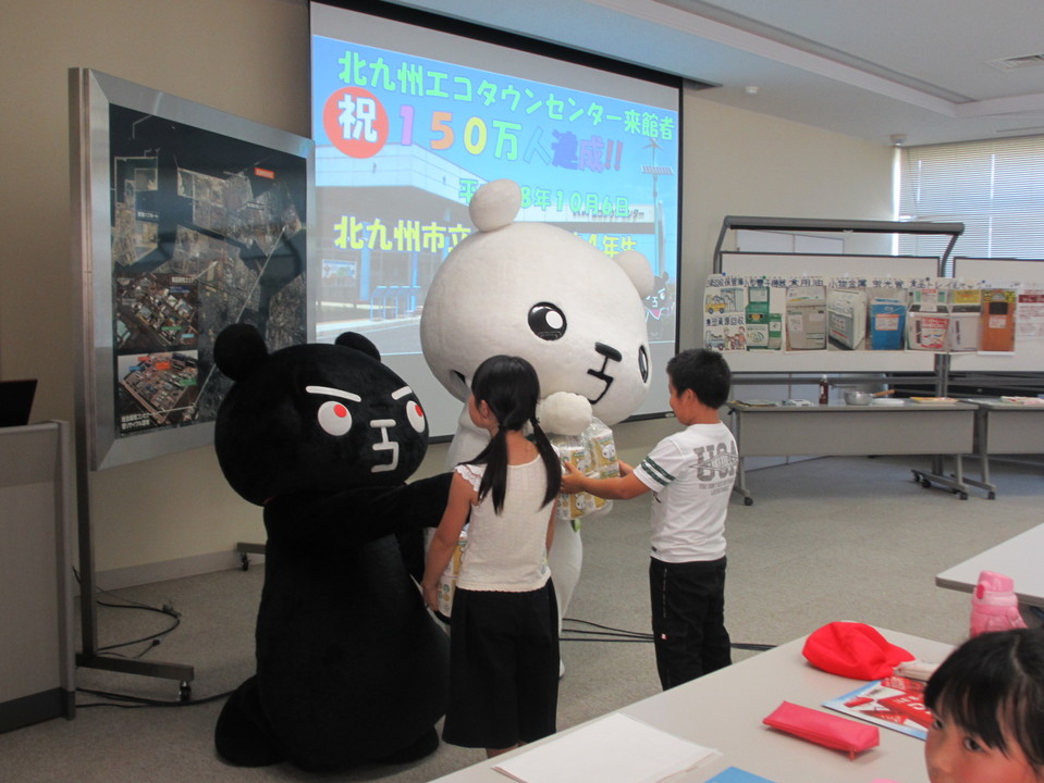 150万人目のお客様は、北九州市立八幡小学校4年生の皆さんです。環境マスコットキャラクターの「ていたん&ブラックていたん」も、もちろん駆けつけてくれましたー(^o^)/