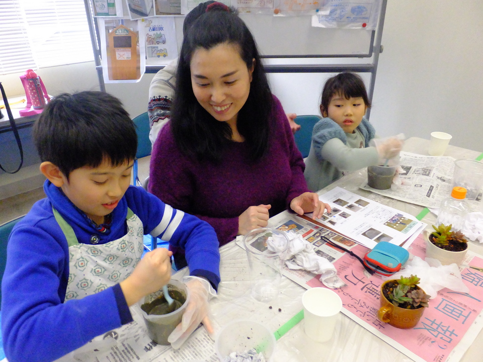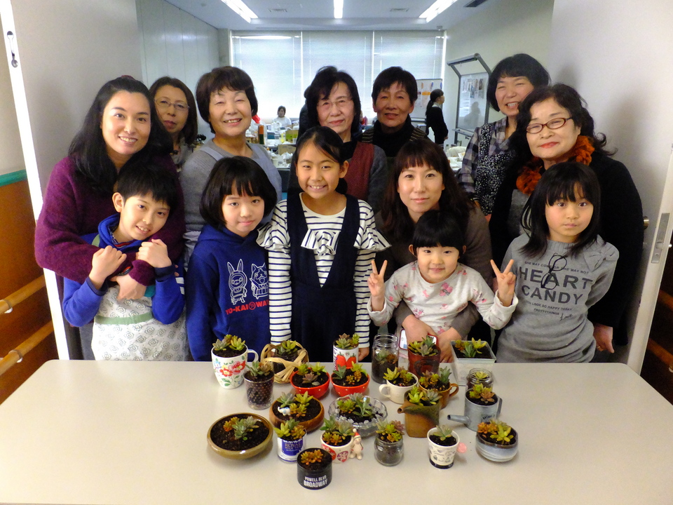今回は自分で持参した、コップや空き缶などの容器に好きな多肉植物を選んで