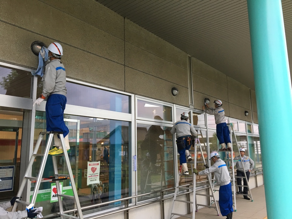 先月末、㈱九電工さんが「さわやかコミュニティ旬間」で、照明の清掃奉仕活動に来てくださいました。