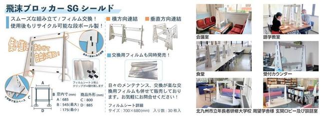 今回選定された飛沫ブロッカー『SGシールド』は飛沫をブロックするフィルム部分の交換が容易で下部のスペースを変更するための高さ調節も容易にでき、縦・横に限らず何台でも連結が可能なため、クリーニング店に限らず医院や整骨院等の受付カウンター・オフィスでの会議・学食等の飲食の場面・語学教室での授業等、業種を問わずに活用できる商品となります。