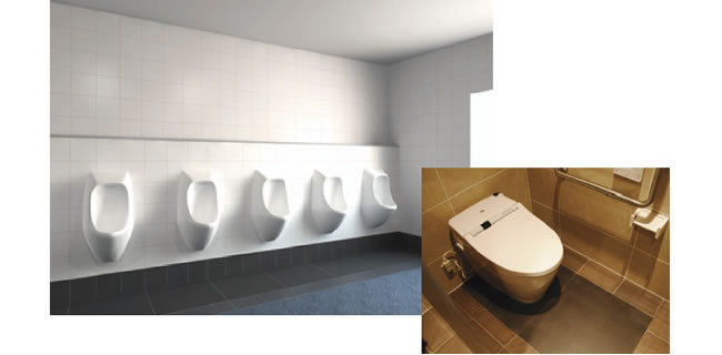 弊社タイル製品は公共トイレ、駅トイレ、銀行トイレ、厨房などで優れた悪臭対策、除菌などの効果を上げ、ご好評をいただいています。