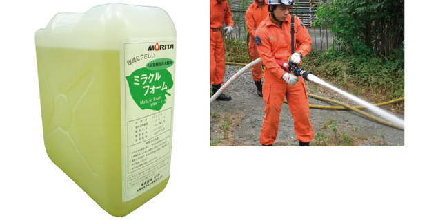 合成系の界面活性剤は使わず、天然系(石けん系)の界面活性剤を使用した、環境にやさしく、かつ消火能力の高い消火剤。水・空気と混合させ泡状にして消火する。浸透力に優れ、素早く消火し布団などに染み込んで再燃も防ぐ。水のみの消火に比べ約17分の1の水量で消火可能。