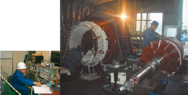 モーターの中のコイルは、人で言うと「血管」に相当します。モーターを長生きさせるための健康診断を実施し、場合によっては緊急手術も行います。わが社には各種モーターの「診断データ」と優秀な技術者が揃っており、あらゆるモーターのトラブルに対応が可能です。