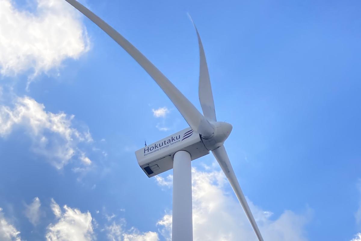 私たちは風の力を借りて電気を作っています。風力発電機の出力は1,990kwとなっております。