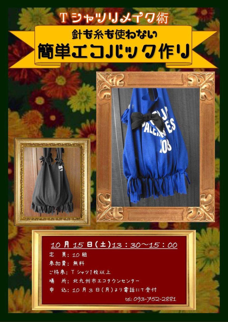 今月のワークショップは「Tシャツリメイク術★針も糸も使わない簡単エコバック作り」です