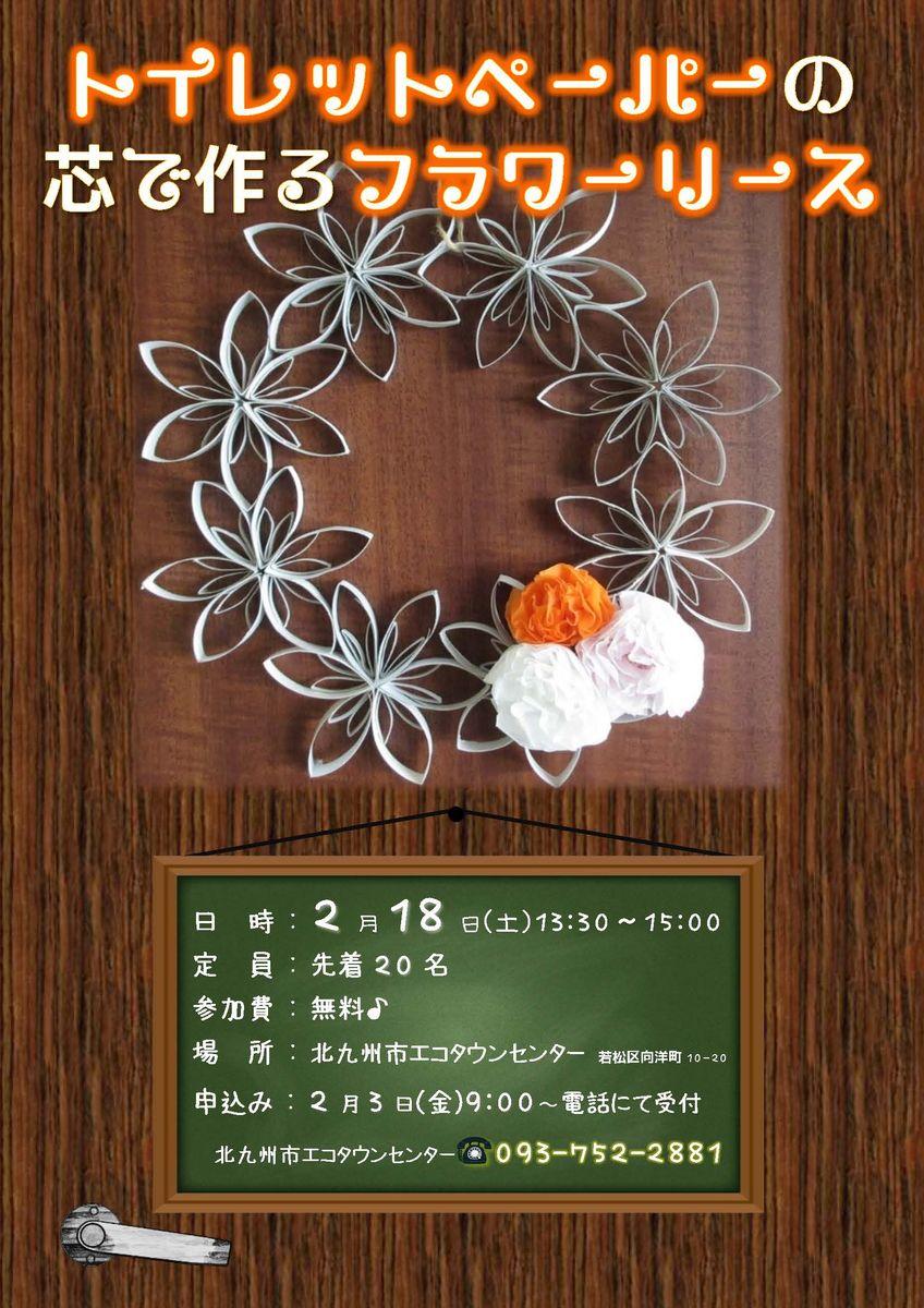 2月のワークショップは「トイレットペーパーの芯でお花のリース作り」です