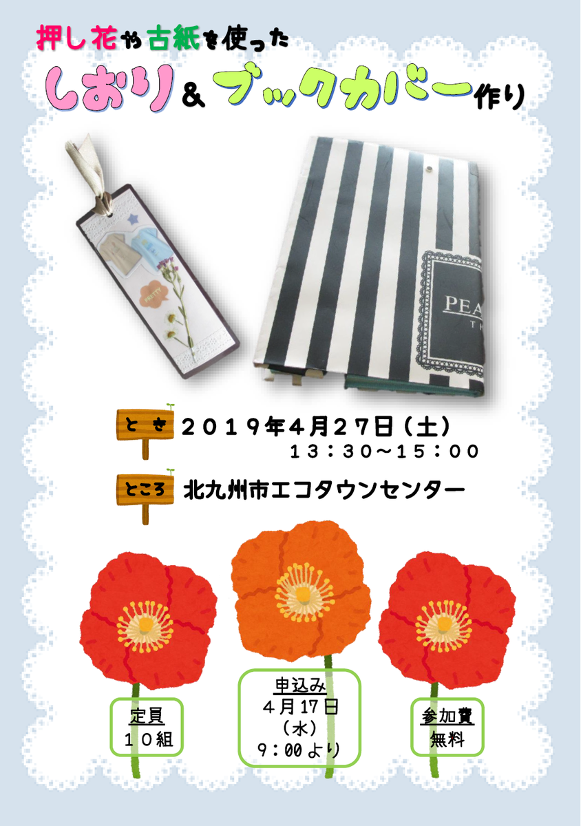 4月のワークショップは「押し花や古紙を使った しおり&ブックカバー作り」です