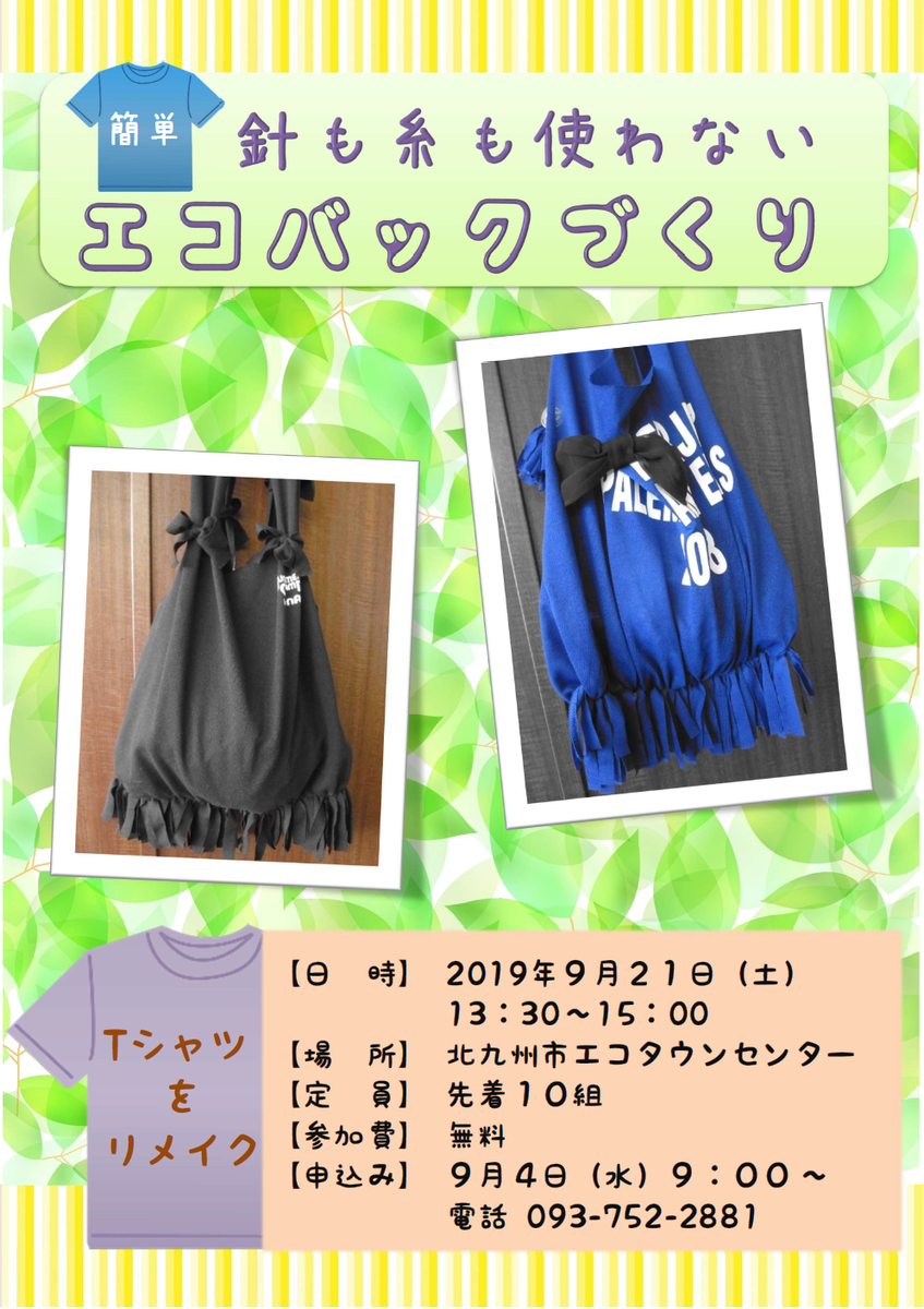 今月のワークショップは「針も糸も使わない簡単エコバック作り」です