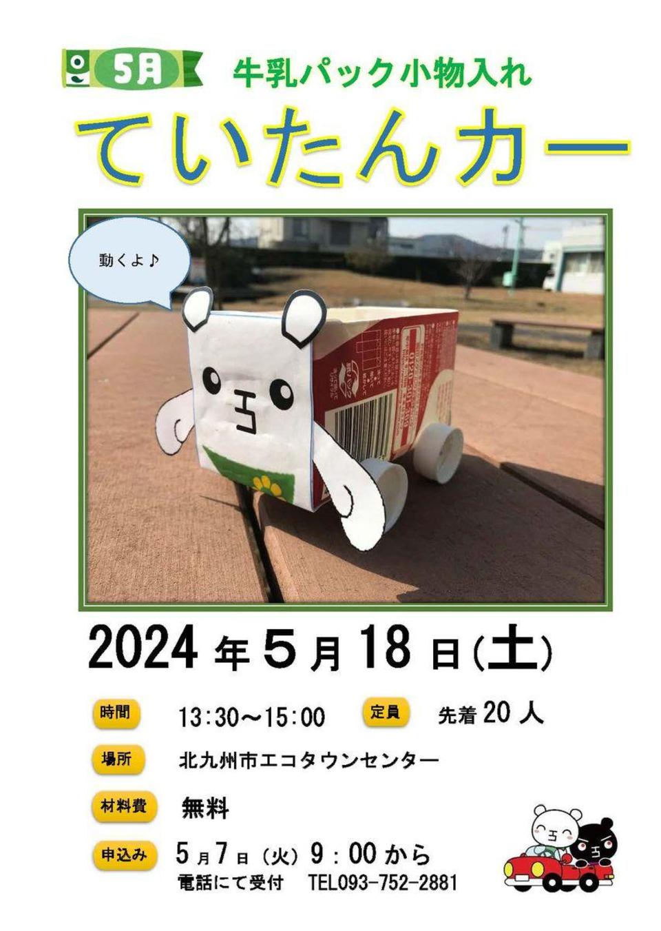 5月のワークショップは牛乳パックで作るていたんカー