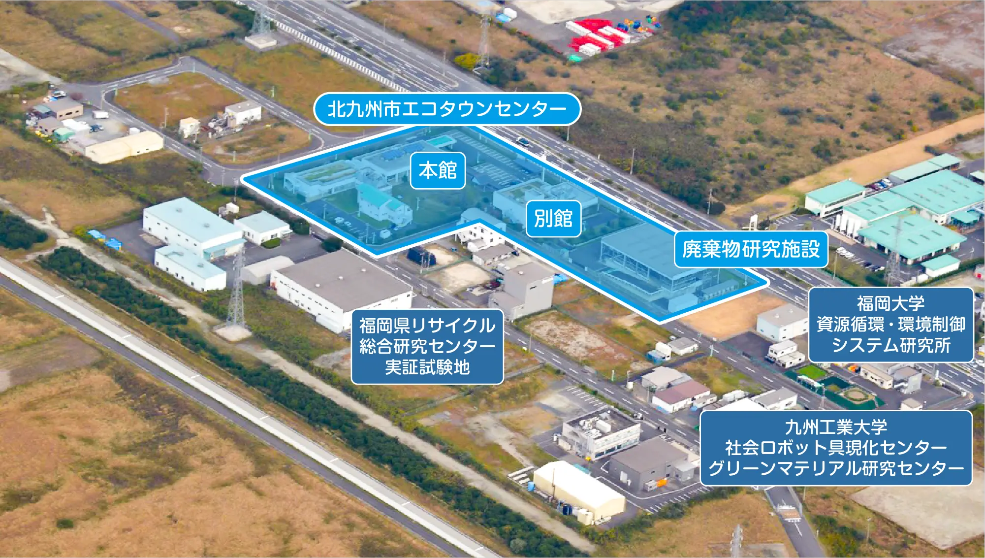 | 所在地 | 北九州市若松区向洋町10番地内(北九州エコタウン事業「実証研究エリア」) ※JR小倉駅より車で30分 |